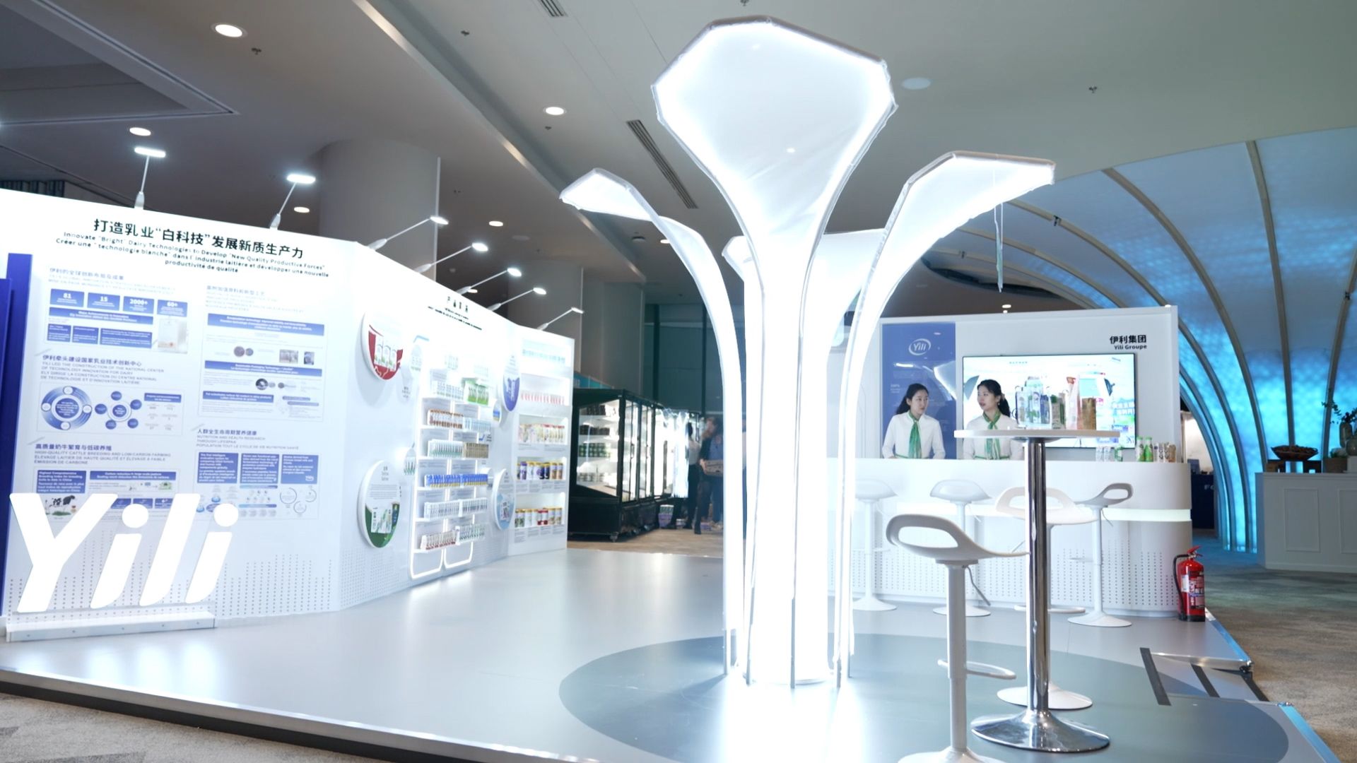 Taking inspiration from "Illuminating the Future with 'Y'", the Galaxy Future Professional Technology booth featured a silver-white design. It transformed the Yili "Y" logo into a blooming floral light column at its center, creating a visual anchor and a popular photo spot. Surrounding this, a modular layout presented Yili's key business segments, showcasing the company's professional strength and innovation.