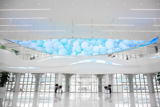 Entering the blue-and-white lobby, the flexible screen suspended from the ceiling displays a liquid-flowing image that vividly depicts the flowing pure milk source, symbolizing pure milk's sustainable nourishment for healthy life, connecting with every consumer. Walking through the corridor, the world's first industrial 5D cinema uses advanced audiovisual technology to present Yili's brand development in a diverse, youthful, cute, and story-based way. There is also the first immersive smart flagship store in China, which not only showcases Yili's five major business unit's star products but also includes a variety of Yili cultural and creative products, expressing Yili's pursuit of quality and a better life.