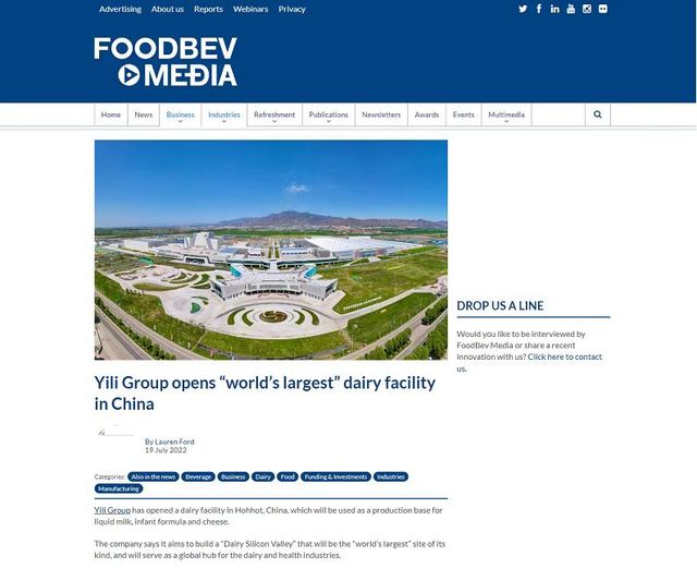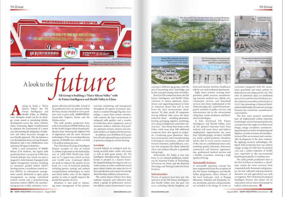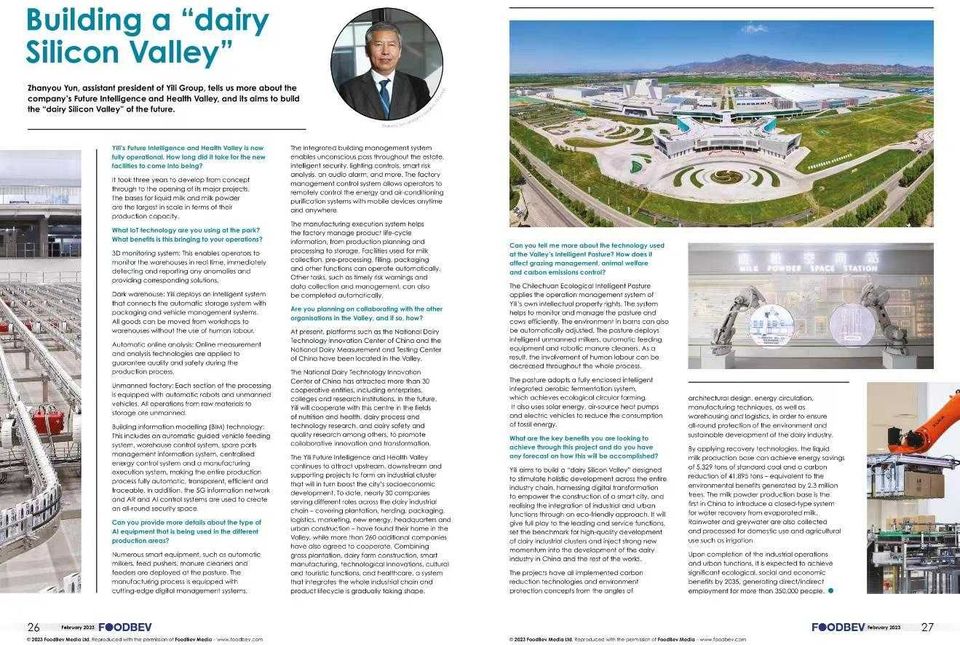近日,位于英國(guó)的國(guó)際權(quán)威行業(yè)媒體FoodBev Media在其2月發(fā)行的雜志中,發(fā)表題為《打造世界“乳業(yè)硅谷”》的專題報(bào)道,向全球讀者分享了伊利現(xiàn)代智慧健康谷領(lǐng)先的數(shù)字化應(yīng)用、綠色低碳環(huán)保技術(shù)、產(chǎn)業(yè)集群化的發(fā)展模式,以及打造“乳業(yè)硅谷”的宏偉目標(biāo)。