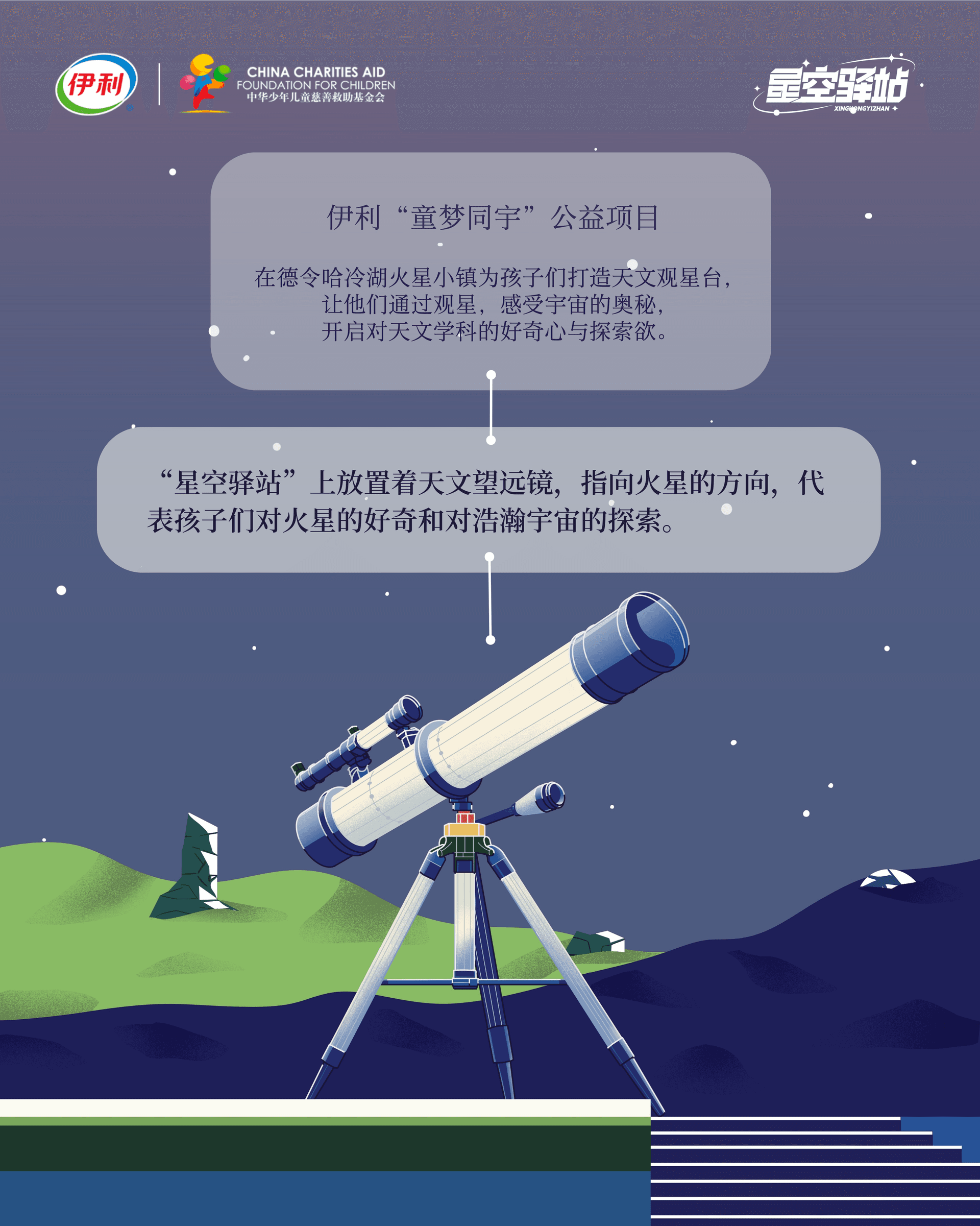 逐夢(mèng)星辰大海,叩問(wèn)浩瀚蒼穹。繼去年底伊利“童夢(mèng)同宇”為德令哈市11所學(xué)校的1000多名學(xué)生提供天文科普資源之后,此次伊利再次為該地打造“星空驛站”觀星地標(biāo)裝置,支持孩子們探索宇宙星空的夢(mèng)想?!靶强阵A站”的建設(shè),將吸引天文愛(ài)好者打卡冷湖小鎮(zhèn),與群星對(duì)話,感受宇宙奧秘。未來(lái),伊利也期待更多社會(huì)公益力量的加入,共同推動(dòng)青少年天文科普事業(yè)的進(jìn)步,為科技強(qiáng)國(guó)夢(mèng)的實(shí)現(xiàn)注入新的動(dòng)力。