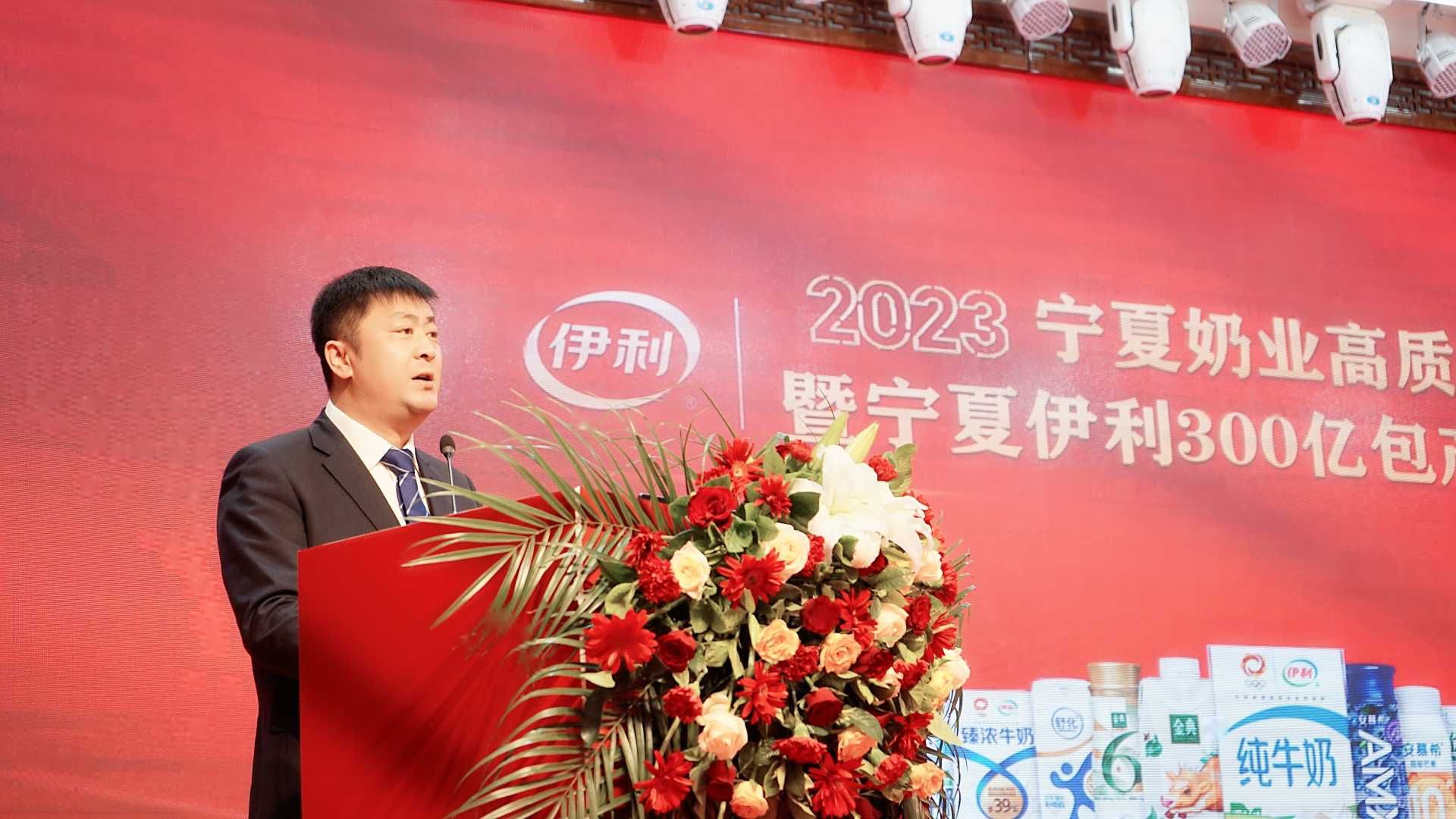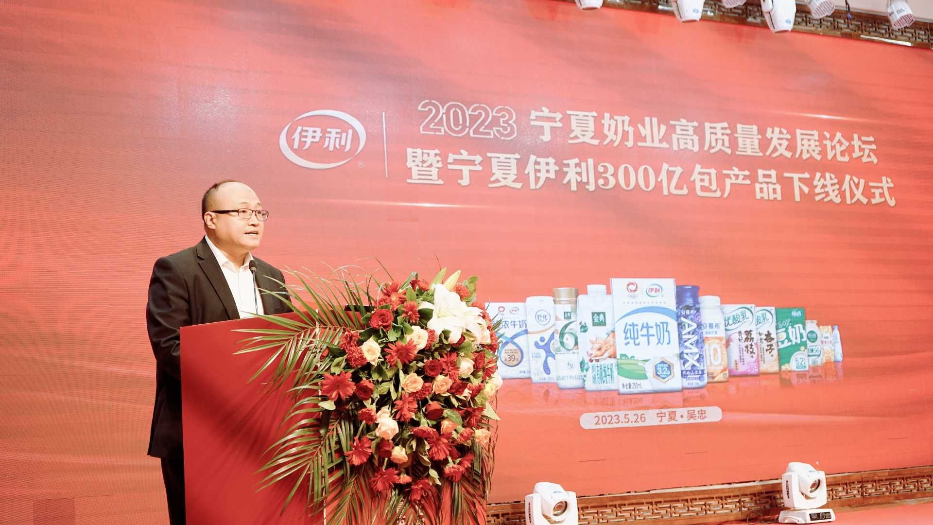 5月26日,2023寧夏奶業(yè)高質(zhì)量發(fā)展論壇暨寧夏伊利300億包產(chǎn)品下線儀式在吳忠市舉行。寧夏回族自治區(qū)吳忠市政協(xié)黨組書記、主席王天軍,自治區(qū)農(nóng)業(yè)農(nóng)村廳黨組成員鄭戈,吳忠市副市長李玉山,內(nèi)蒙古、遼寧、陜西等省區(qū)奶業(yè)協(xié)會相關(guān)負(fù)責(zé)人,伊利集團(tuán)執(zhí)行總裁劉春喜,以及來自寧夏農(nóng)墾集團(tuán)、利樂、康美、新巨豐等伊利全球供應(yīng)商、產(chǎn)業(yè)鏈合作伙伴代表,共同見證寧夏奶業(yè)這一里程碑時刻。