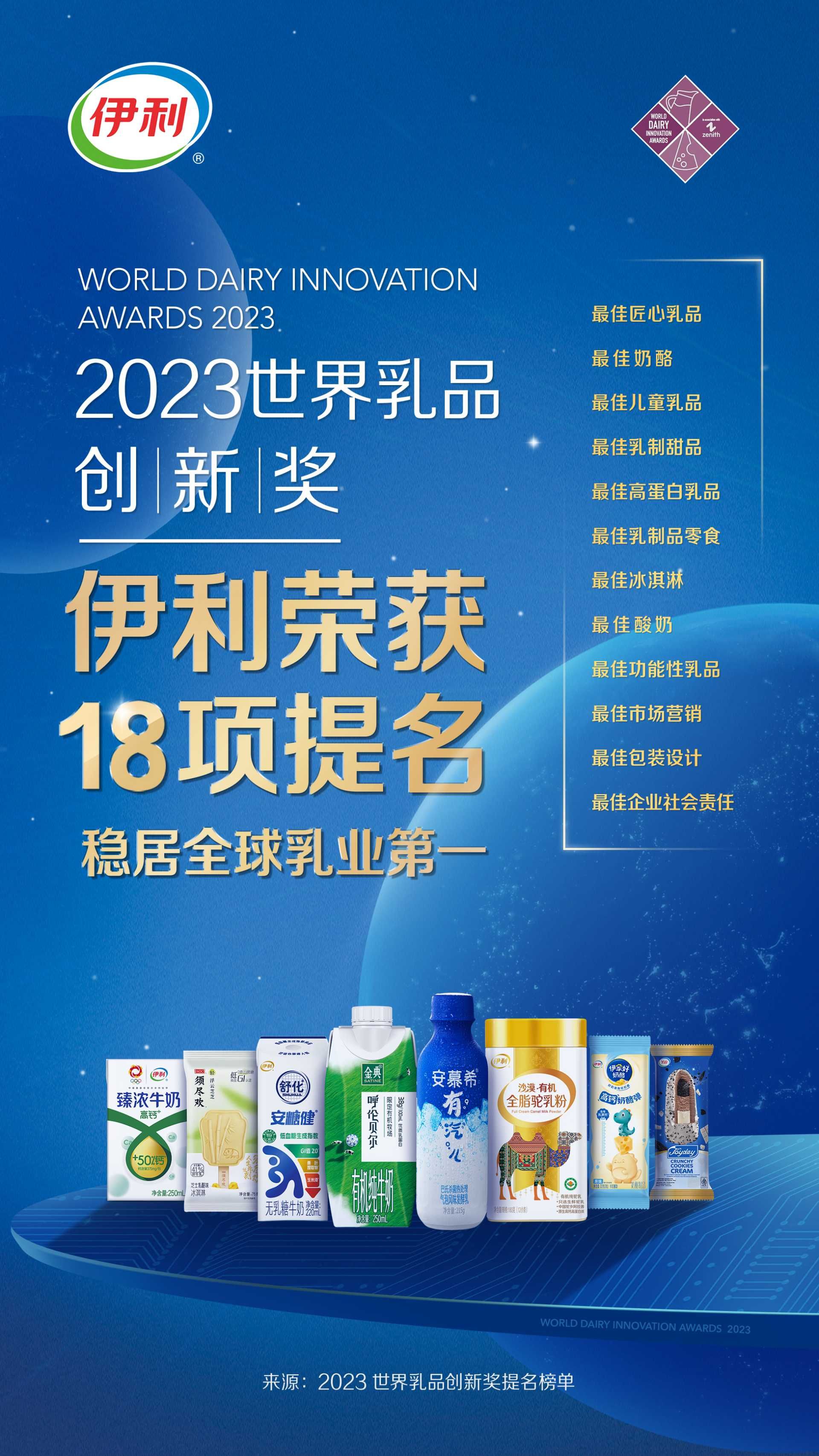 2023世界乳品創(chuàng)新獎(jiǎng)提名揭曉,伊利獲18項(xiàng)提名領(lǐng)跑全球行業(yè)