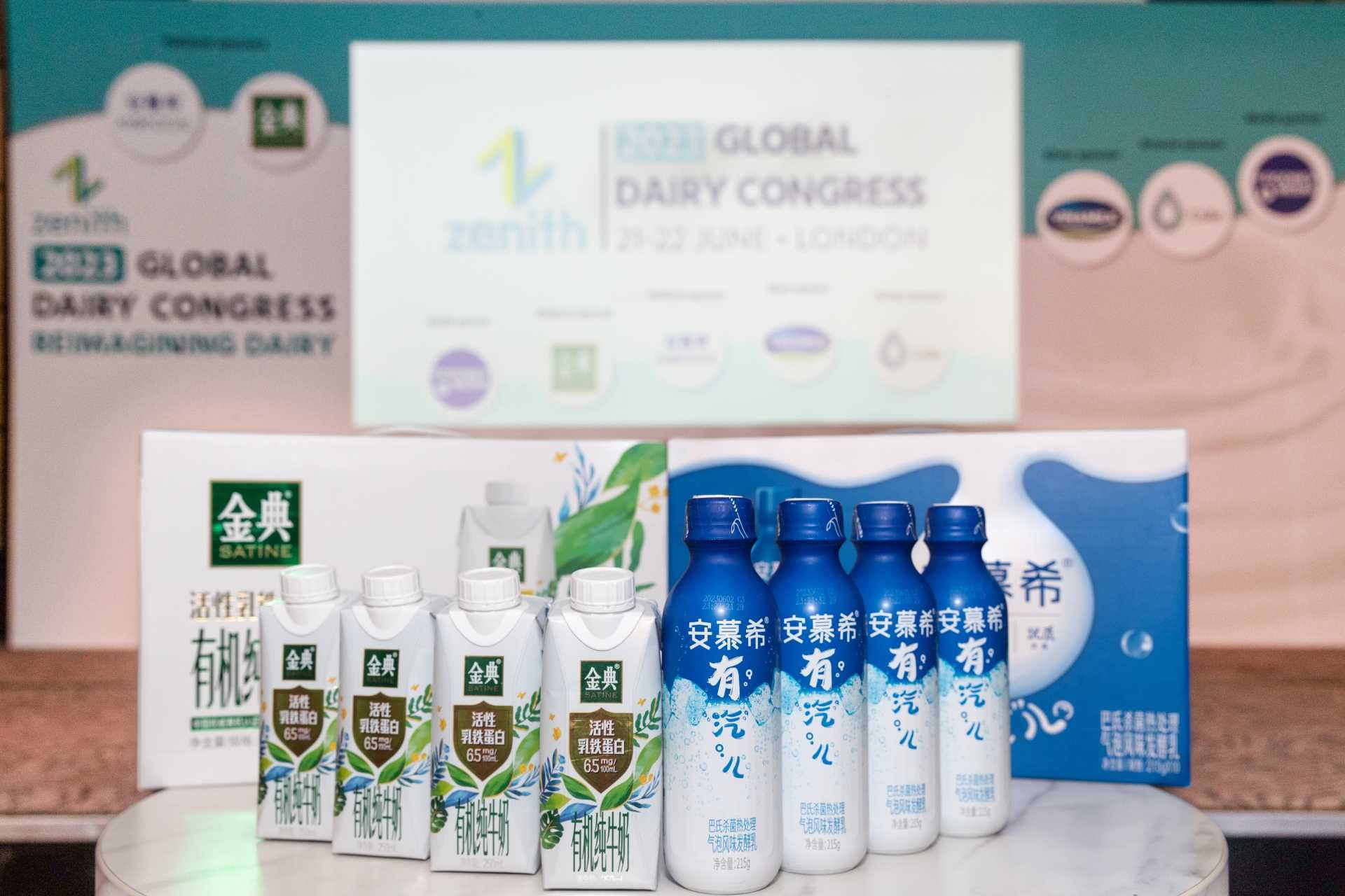 ▲金典活性乳鐵蛋白有機純牛奶與安慕希有汽兒氣泡酸奶攜手亮相大會現(xiàn)場
