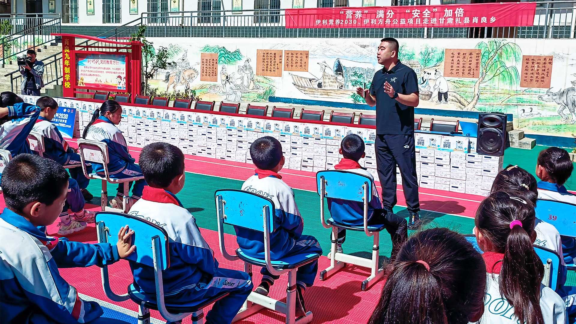 禮縣肖良鄉(xiāng)地處高寒山區(qū),交通不便,山峻谷深,時常會出現山體滑坡等自然災害。兩年前,伊利攜手國家市場監(jiān)督管理總局食品審評中心與禮縣肖良鄉(xiāng)當地政府開展了結對幫扶活動,向肖良鄉(xiāng)九年制學校捐贈了營養(yǎng)物資和助學金。此次,伊利不僅給孩子們帶來了近8萬包伊利學生奶,還邀請到首席應急救援培訓專家云飛開展了《常見自然災害常識與逃生避險》《校園應急疏散指南》的安全培訓,助力孩子“營養(yǎng)滿分”“安全加倍”,度過快樂假期。這也是“伊利營養(yǎng)2030”和“伊利方舟”兩大公益項目聯袂實施的一次愛心助學行動。