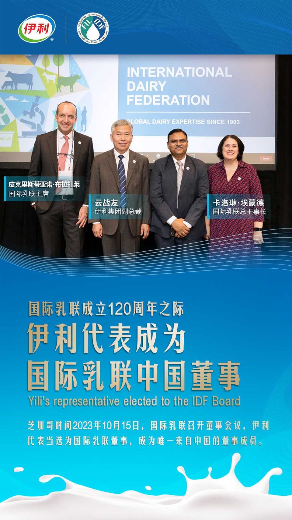 國(guó)際乳聯(lián)主席、總干事長(zhǎng)宣布伊利代表獲選