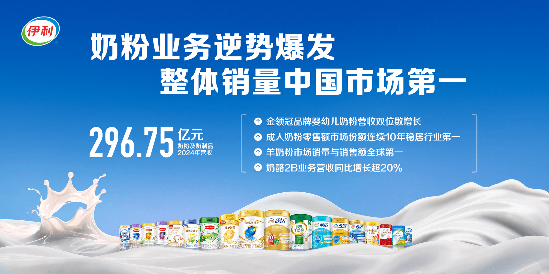 與“雙領跑”的業(yè)績交相呼應,伊利全品類業(yè)務也全面實現(xiàn)行業(yè)領跑。尤其是公司重點布局的奶粉業(yè)務,以強勢增長迎來戰(zhàn)略收獲期,整體銷量穩(wěn)居中國市場第一。