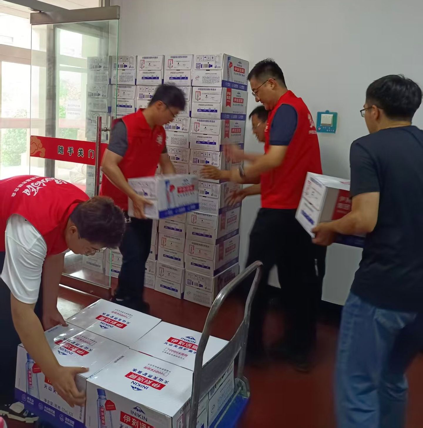 面對(duì)災(zāi)情,伊利聯(lián)合中國紅十字基金會(huì),緊急啟動(dòng)自然災(zāi)害應(yīng)急預(yù)案,伊心向陽志愿者們?cè)俅纬霭l(fā)。7月28日早上7點(diǎn),“伊心向陽”志愿者啟程,前往密云的石城鎮(zhèn)、馮家裕鎮(zhèn)、不老屯鎮(zhèn)和懷柔的琉璃廟鎮(zhèn)等受災(zāi)嚴(yán)重的鄉(xiāng)鎮(zhèn),為受災(zāi)群眾捐贈(zèng)金典純牛奶、伊刻活泉礦泉水等急需物資。