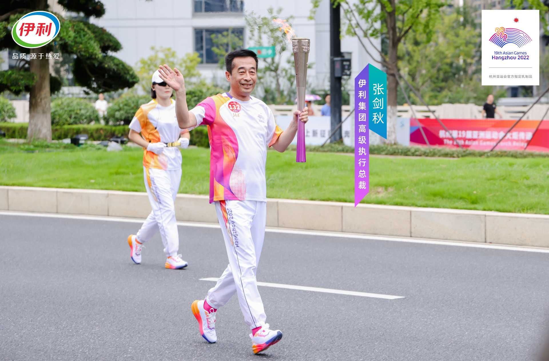 9月20日,杭州第19屆亞運會火炬回到杭州,開啟最后一站傳遞。在充滿良渚文化氣息的“錦繡繁華新天堂線”上,伊利集團高級執(zhí)行總裁張劍秋作為亞運火炬手,參與并順利完成了第132棒的火炬?zhèn)鬟f。