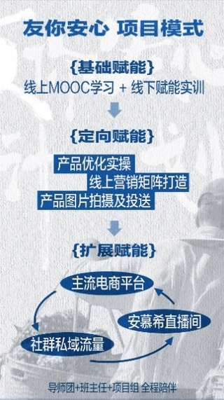 2023年5月10日,《安慕希友你安心計(jì)劃鄉(xiāng)村振興價值評估報告》(以下簡稱“報告”)正式發(fā)布。該報告指出,項(xiàng)目首次通過線上和線下賦能培訓(xùn),實(shí)現(xiàn)了免費(fèi)共享優(yōu)質(zhì)培訓(xùn)資源的鄉(xiāng)村振興新模式。通過整體的項(xiàng)目體系,可以全方位打造一支帶頭人隊(duì)伍,進(jìn)而帶動當(dāng)?shù)馗嗟漠a(chǎn)業(yè)鏈人員受益,形成一套良好的創(chuàng)業(yè)生態(tài)體系。